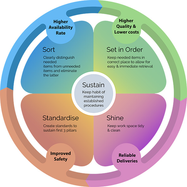 The 5S approach is a simple but powerful method for shopfloor improvement. Progressive shopfloor improvement techniques are vital for companies who want to stay competitive and to achieve world-class excellence. Companies must find new ways to ensure the survival in this competitive environment by adapting to the changing business needs.