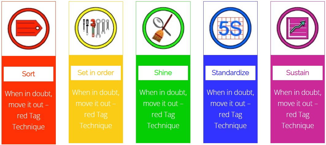 1. Sort2. Set in Order3. Shine4. Standardise5. Sustain